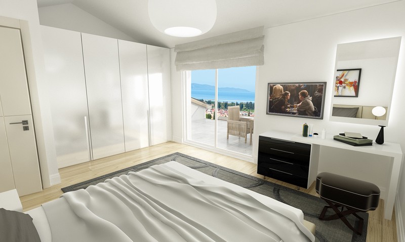• Bathrooms with first quality shower cabine, taps, wall – hung toilet bowl and Hilton style wardrobes.