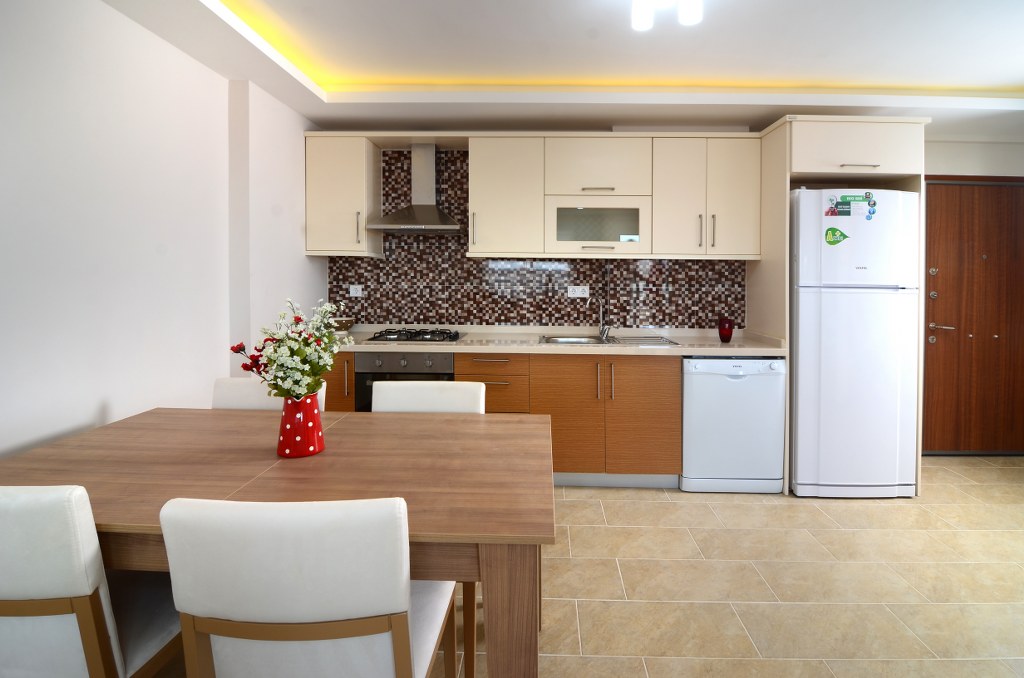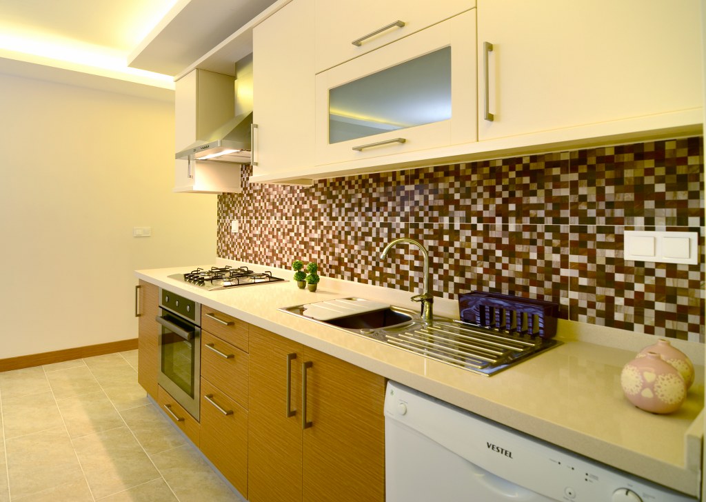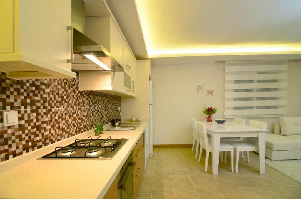 Özel dizayn edilmiş hazır mutfak ve mutfak tezgâhı.
